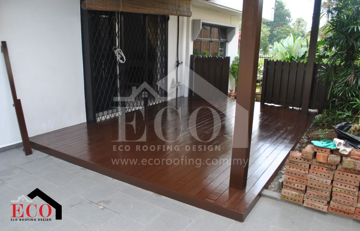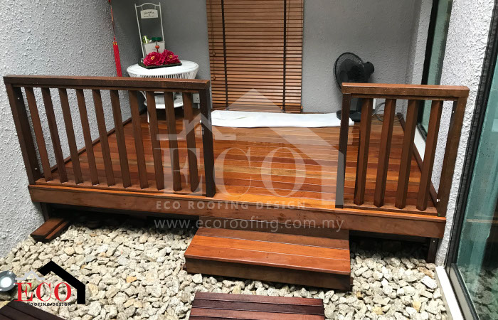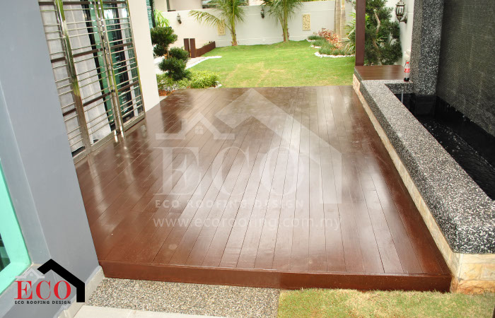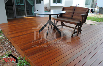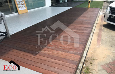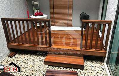 Timber Decks are practical and timeless at the same time, where the durable wood decks add instant charm and unmatched practicality and durability in the long run. Timber decks are wooden platforms that can be placed around the vicinity to cover unsightly fixtures like drains and pipes. They can also be used flexibly, and creatively for an assortment of architecture needs. Eco Roofing Design provides a wide range of timber decks, for both indoor and outdoor spaces. Timber decks are flexible additions to your home architecture. They can be built from different wood high quality timber materials such as Balau wood and Chengal wood (mostly timber deck is recommended Chengal wood), according to your budget. Hardwood timber decks provide a stylish addition to enhance your home space, with a unique wooden tone and grains. Timber decks are aesthetically and practically amazing for homes, but it requires regular maintenance to make sure your decks will last you for a very long time. We offer a wide variety of hardwood sourced from different countries, for you to choose from for your timber decks. The natural grains and wooden tones will render a unique yet timeless look and feel for your timber decks. Whether you prefer a weathered look, or a polished glaze, Eco Roofing Design is here to help accomplish. The processes from production, installation to maintenance, are completed by a team of professional technicians to guarantee you the quality assurance.